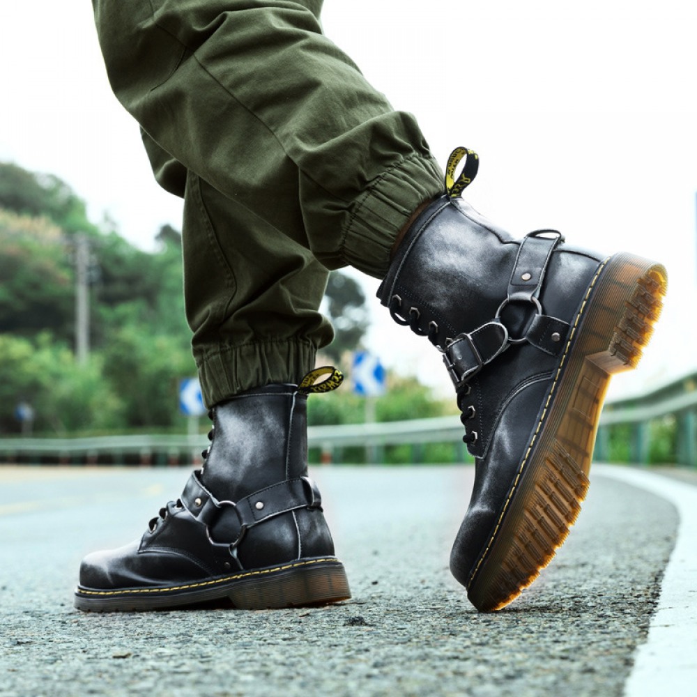 Martin Boots Men's British Style Tooling Boots Mens Autumn Trend High-Top Shoes Casual Breathable Short Boots
