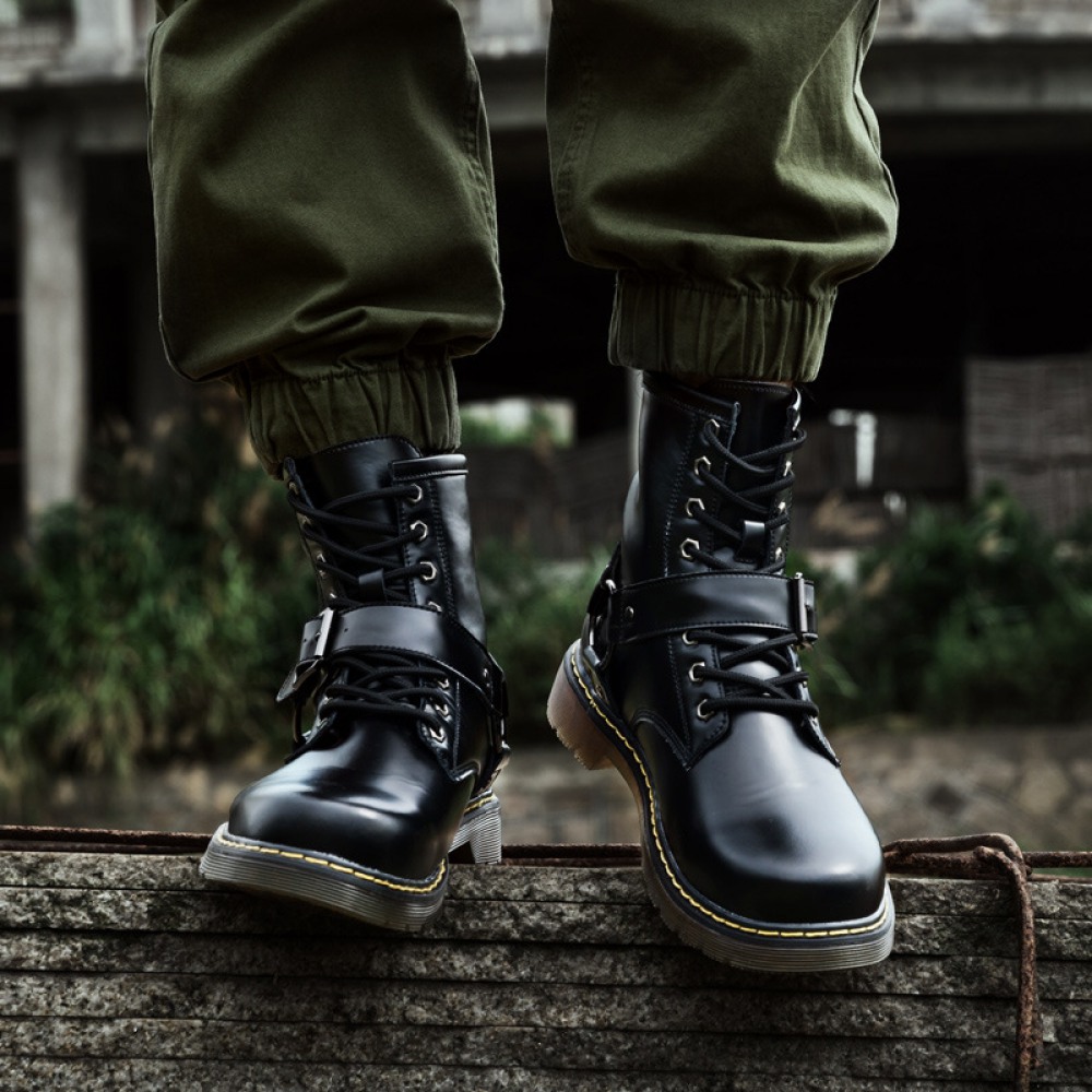 Men's Martin Boots New Leather Boots Casual Mid-Cut Boots High-Top Men's Shoes