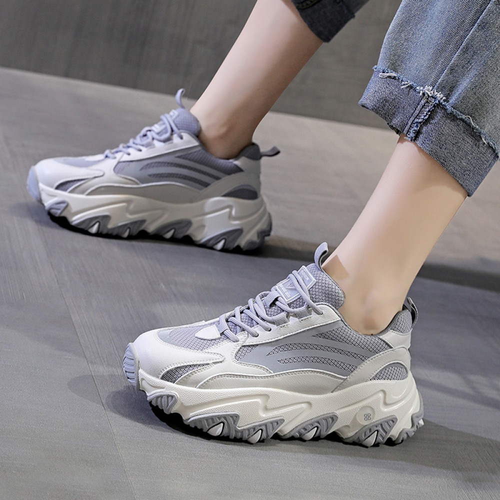 Women's Autumn Mesh Trendy Shoes Reflective Thick-Soled Increased Casual Sports Women's Shoes